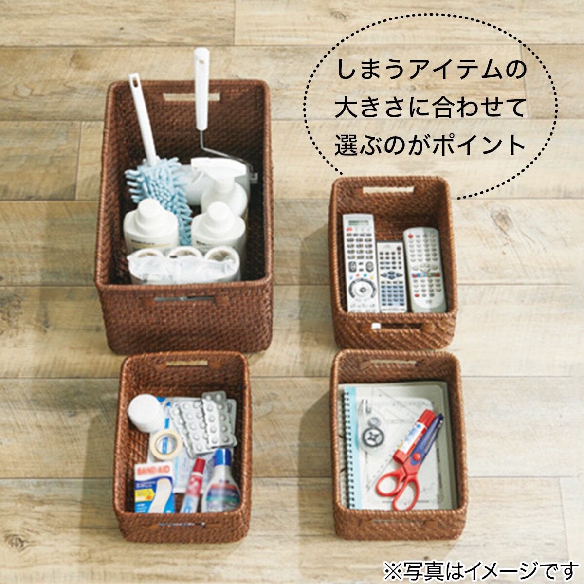 ウッドチップ スクエア 持ち手付き 収納バスケット Sl2個セット インテリア 収納グッズ 収納バスケット ボックス イノブンオンラインショップ