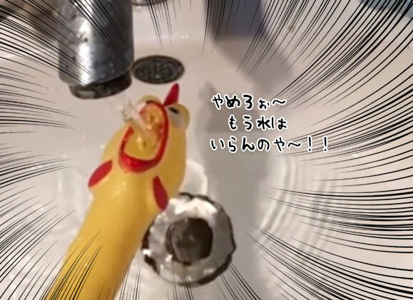 お腹を押すとものすごい声で鳴くおもちゃ びっくりチキン に水を飲ませると大変なことに ニコニコニュース
